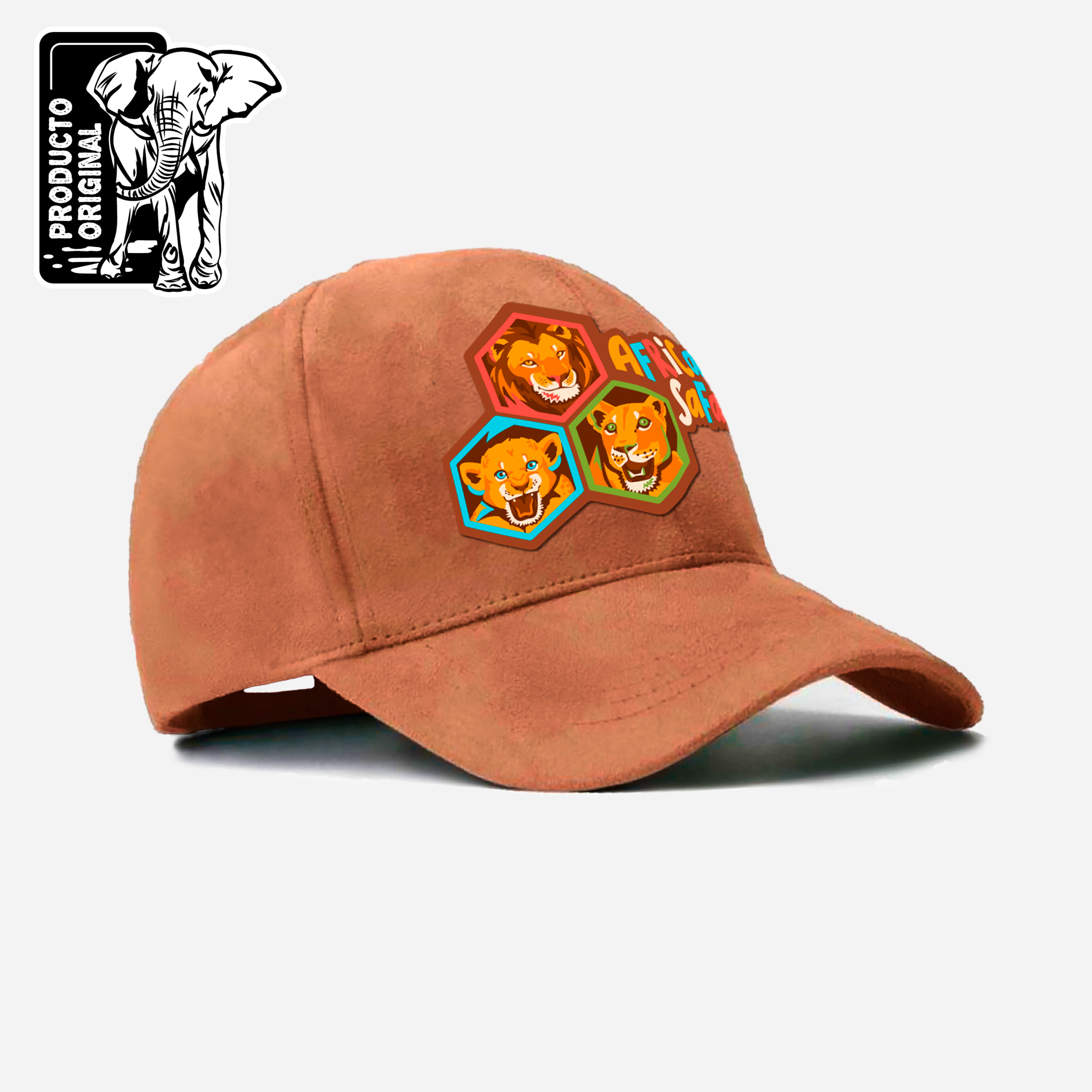 Diseño único. Diseñada de nobuk suave y decorada con un hermoso estampado de una familia de leones, esta gorra es perfecta para quienes buscan un accesorio que combine comodidad, calidad y un diseño impresionante.