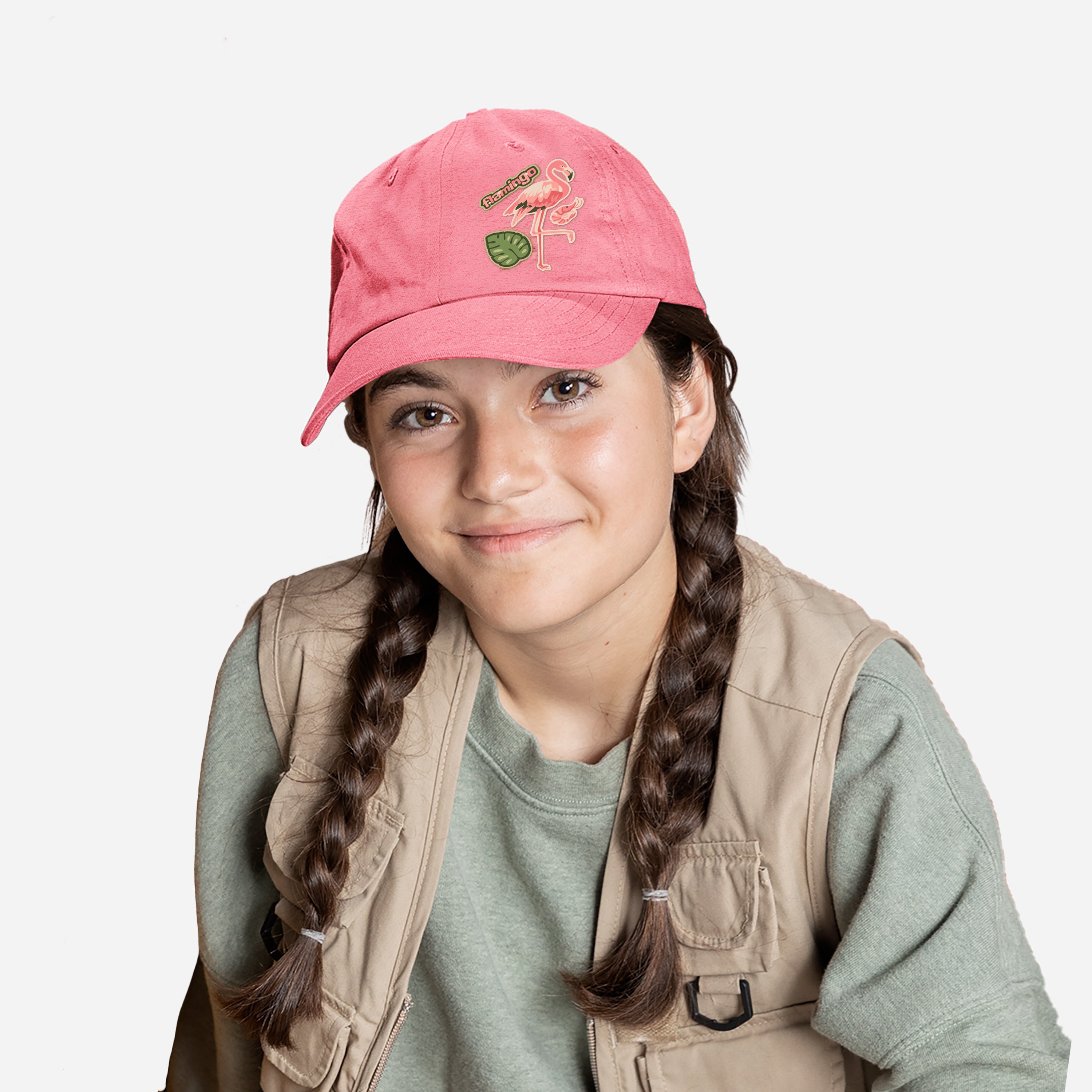 Diseño único. Diseñada de nobuk suave y adornada con un encantador estampado de flamingo animado, esta gorra es perfecta para quienes buscan un accesorio único que combine comodidad y estilo.