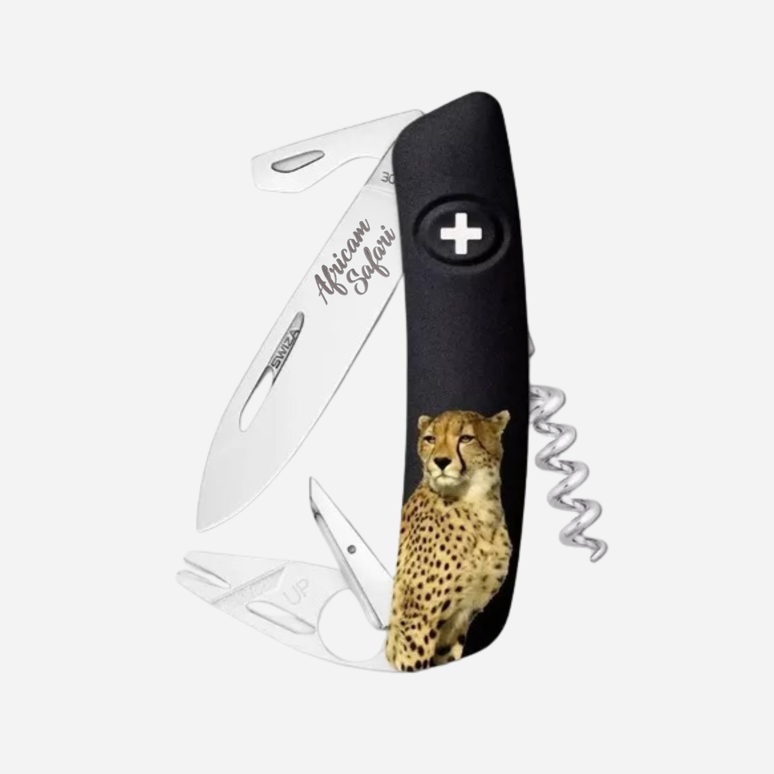 Diseño único. En Africam Safari, fusionamos la fuerza de la naturaleza con la funcionalidad suiza en nuestra nueva colección de navajas. Presentamos con orgullo nuestras navajas suizas con diseño de leopardo, una mezcla perfecta de elegancia salvaje y destreza inigualable.