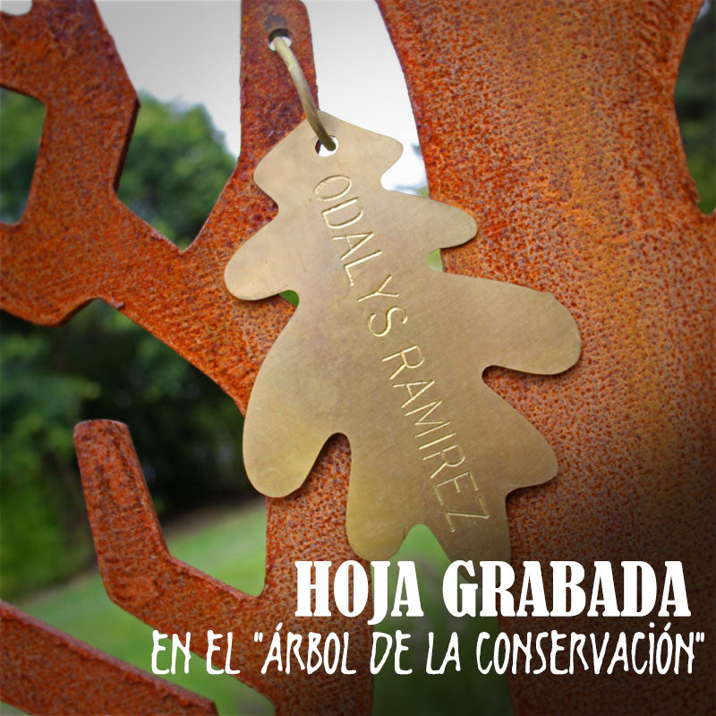 - Registro fotográfico de la hoja grabada en el "árbol de la conservación"
