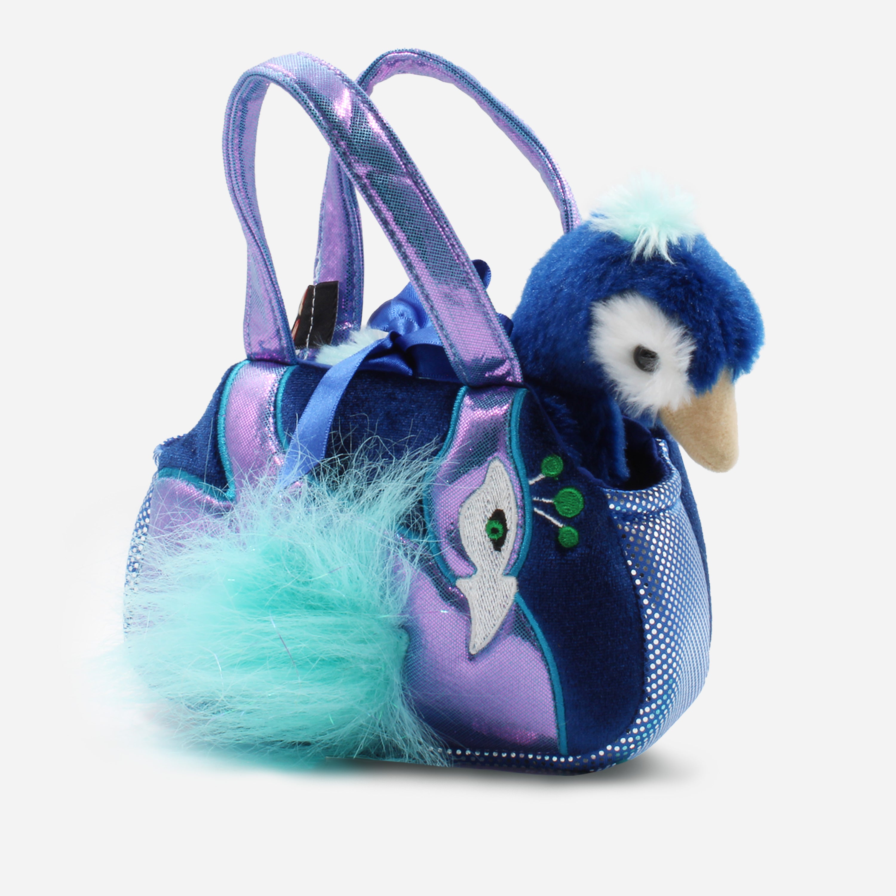 Diseño único. Nuestra bolsa presenta un diseño en 3D de un pavo real de peluche, que cobra vida con cada detalle, desde sus vibrantes plumas hasta su cola majestuosa y colorida.