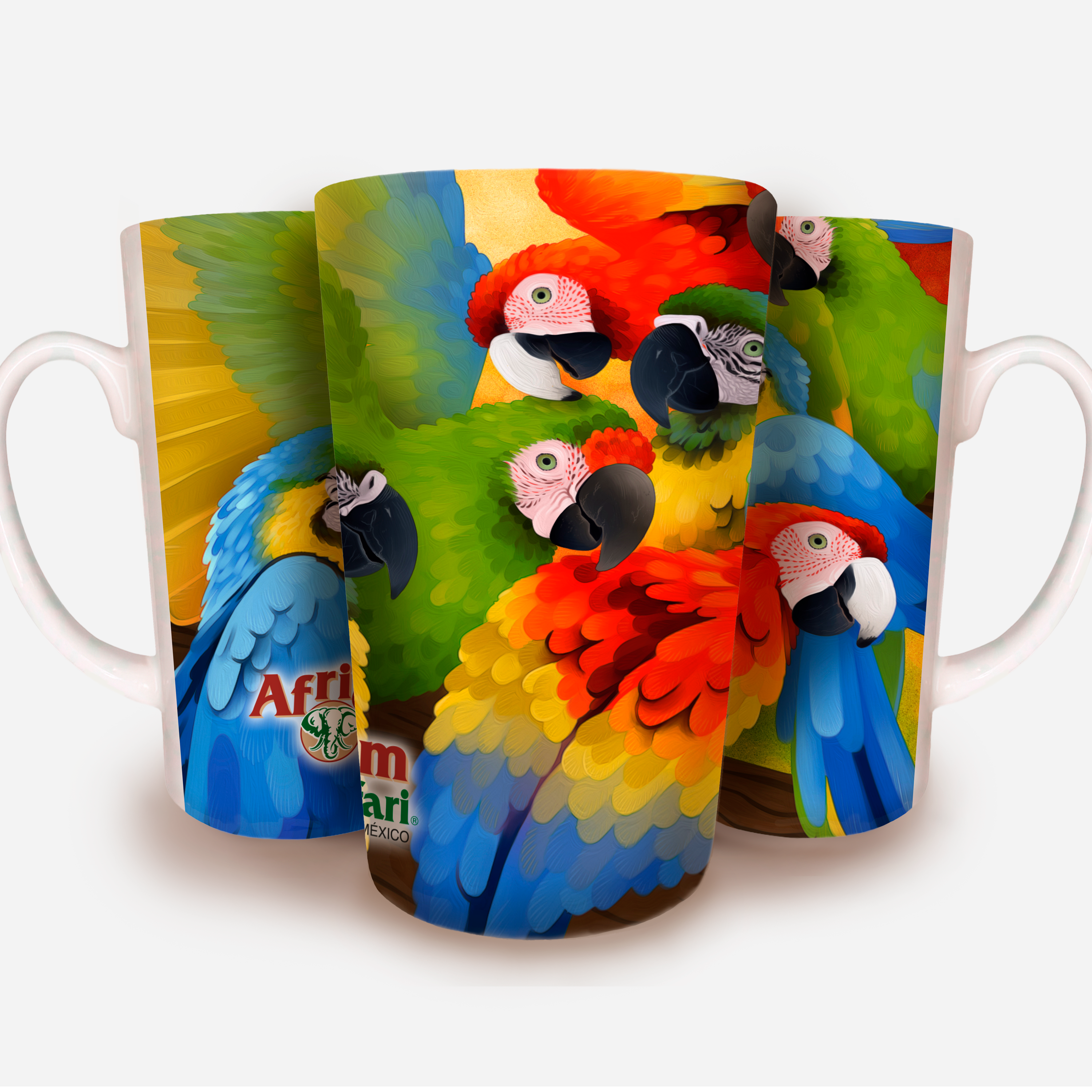 Diseño único. Acompaña tu desayuno con esta original taza cónica que lleva a los maravillosos colores de las guacamayas. Diseñada para elevar tu experiencia de disfrutar tus bebidas calientes favoritas.
