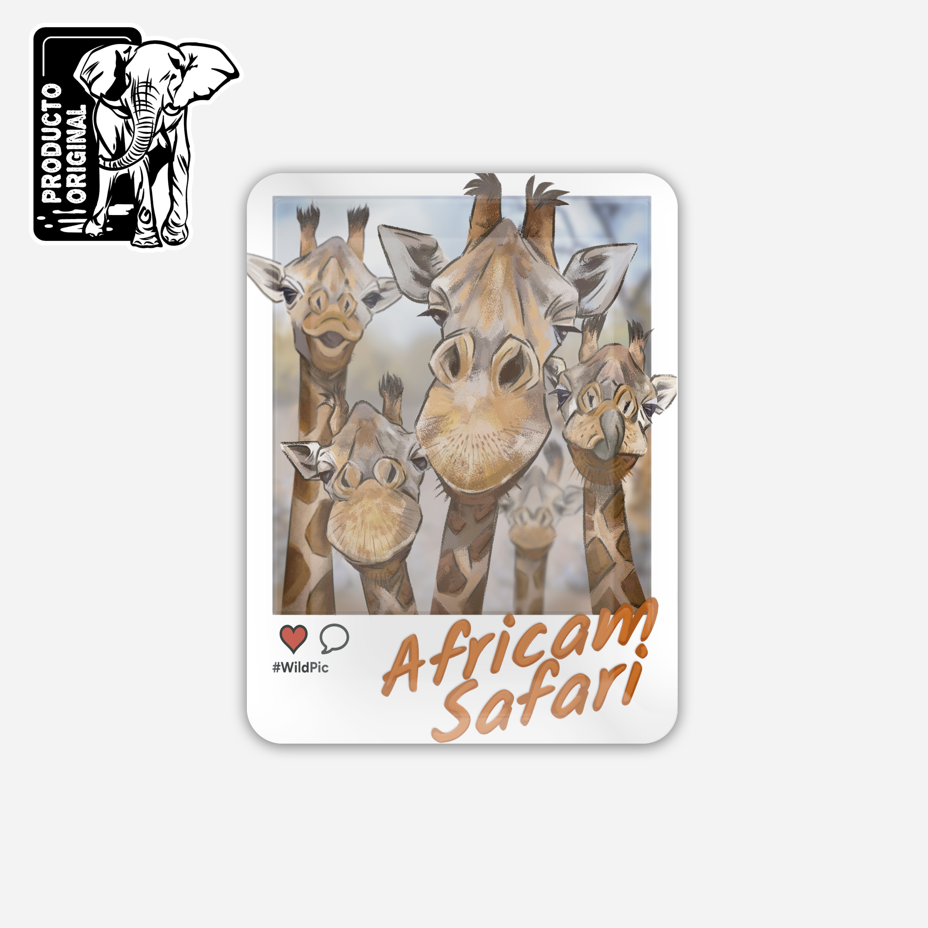 Diseño único. Una foto tipo selfie de jirafas con su largo cuello y simpatía inconfundible. ¡Una imagen que sacará una sonrisa a todos los que la vean!