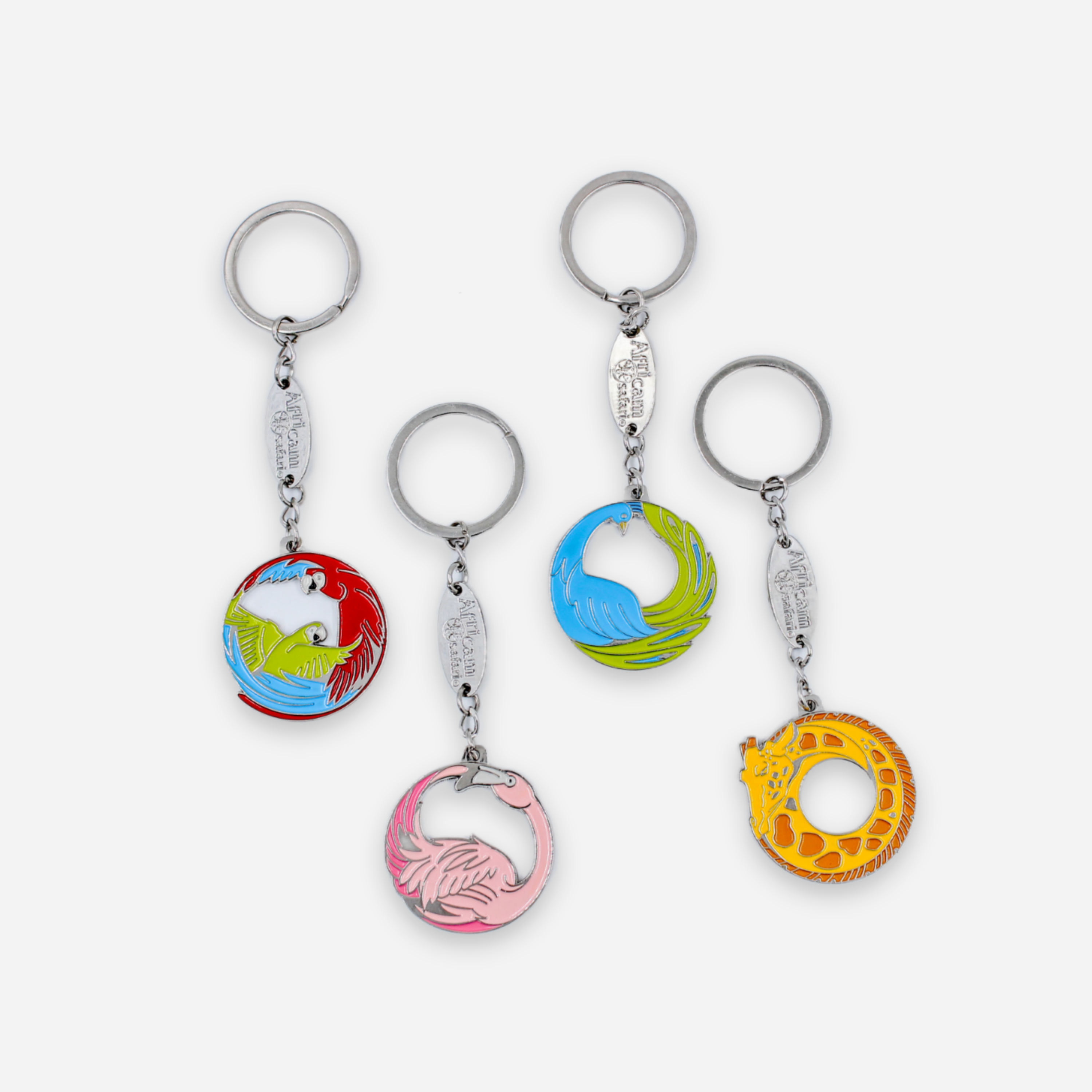 Diseño único. Te presentamos nuestra exclusiva línea de llaveros circulares, una obra maestra de diseño que captura la esencia vibrante y colorida de estos animales.