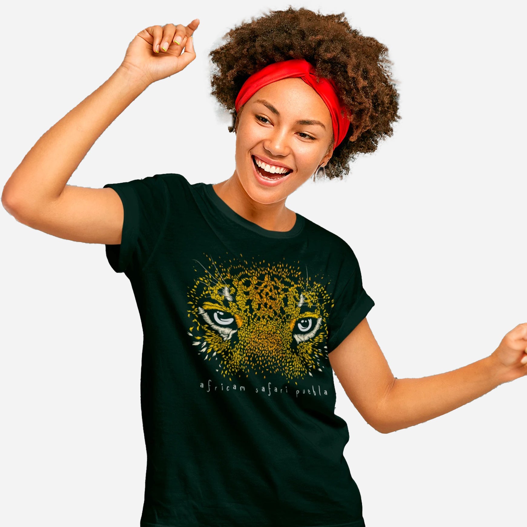 Diseño único. El diseño de la mirada del jaguar es cautivador y enigmático. Esta playera es perfecta para quienes buscan un toque de misterio y un diseño 100% original.
